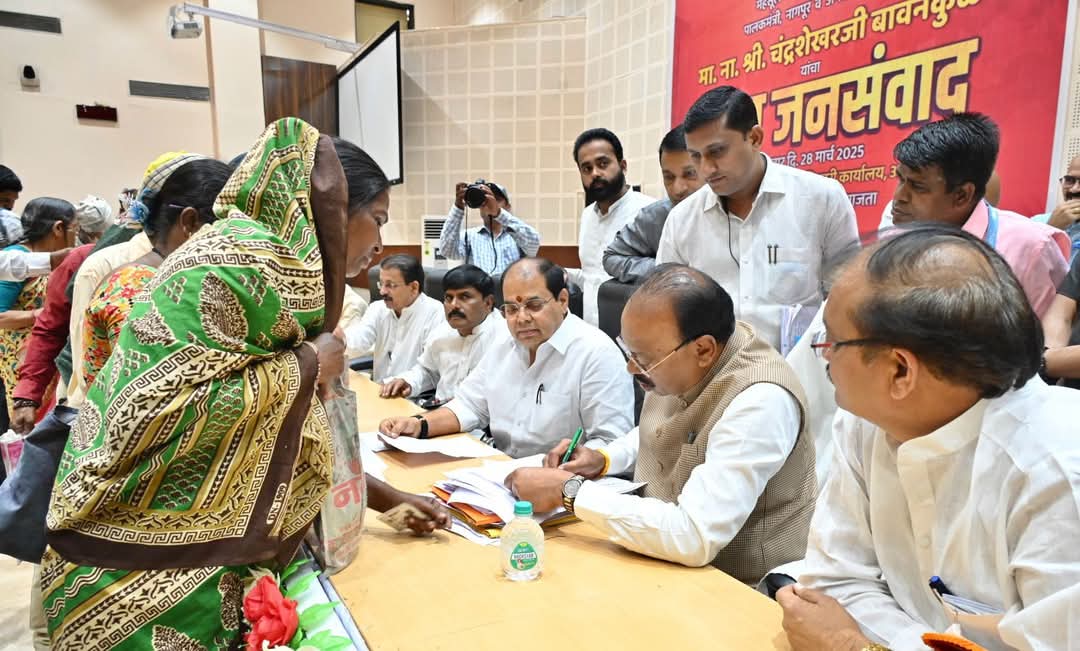 अमरावती : महसूलमंत्री तथा पालकमंत्री चंद्रशेखर बावनकुळे यांनी शुक्रवारी येथील नियोजन भवनातील सभागृहात जनसंवाद कार्यक्रम राबविला. यामध्ये विविध क्षेत्रांतील स्थानिक समस्यांबाबत नागरिकांनी ७००वर निवेदने सादर केली. जनसंवाद कार्यक्रमाला नागरिकांचा उत्स्फूर्त प्रतिसाद लाभला. पालकमंत्री यांना निवेदन देण्यासाठी नागरिकांच्या लांबलचक रांगा लागल्या होत्या. पालकमंत्री यांनी तक्रारी, निवेदने आणि समस्या घेऊन आलेल्या नागरिकांशी व्यक्तीशः संवाद साधला, त्यांचे म्हणणे ऐकून घेतले. त्यांच्या तक्रारीवर येत्या आठ दिवसात कार्यवाही करण्यात येणार असून, त्यासंबंधीची पोहोच पालकमंत्री कार्यालयातून आठ दिवसात देण्यात येणार आहे. अनेक लोक वैयक्तिक समस्यांची निवेदने घेऊन जनसवांद कार्यक्रमात आले होते.