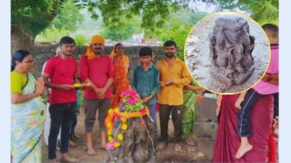माहूर इथं पावसामुळे सापडली दुर्मीळ चतुर्मुखी गणेश मूर्ती; दर्शनासाठी भाविकांची गर्दी