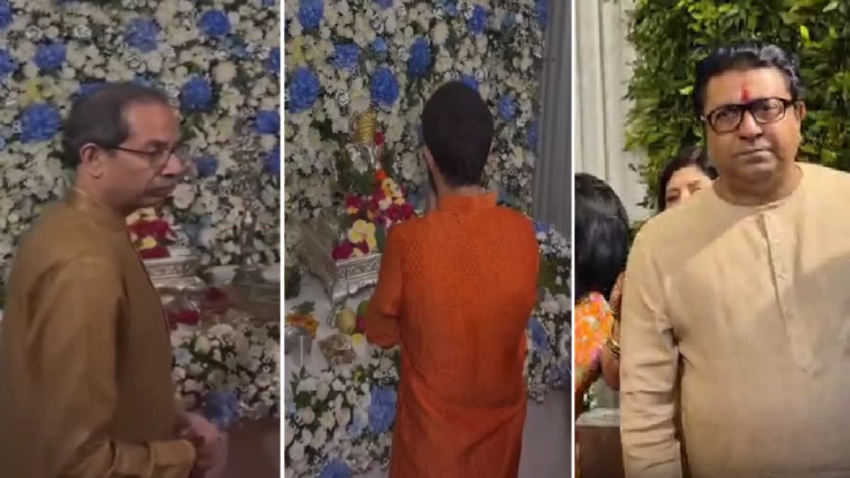 राज ठाकरेंच्या घरी गणपतीचं दर्शन : गणेशोत्सवानिमित्त उद्धव ठाकरे हे बुधवारी मनसेप्रमुख राज ठाकरे यांच्या शिवाजी पार्क येथील निवासस्थानी कुटुंबासह गणपतीचं दर्शन घेण्यासाठी दाखल झाले. यावेळी त्यांच्यासोबत पत्नी रश्मी ठाकरे व आदित्य ठाकरेही उपस्थित होते. राज ठाकरे यांच्या घरी दीड दिवसाचा गणपती असतो. काही दिवसांपूर्वी राज ठाकरे यांनी स्वत: फोन करत उद्धव ठाकरेंना गणपतीला घरी येण्याचं निमंत्रण दिलं होतं. हे आमंत्रण स्वीकारात उद्धव ठाकरे हे राज ठाकरे यांच्या निवासस्थानी दाखल झाले. दरम्यान, 2003 मध्ये श्रीकांत ठाकरे यांच्या निधनाच्यावेळी उद्धव ठाकरे हे राज ठाकरेंच्या कृष्णकुंज या आधीच्या निवासस्थानी आले होते. त्यानंतर तब्बल 22 वर्षांनी उद्धव ठाकरे हे सहकुटुंब गणेशोत्सवानिमित्त राज ठाकरेंच्या शिवतीर्थ या नव्या निवासस्थानी दाखल झाले.