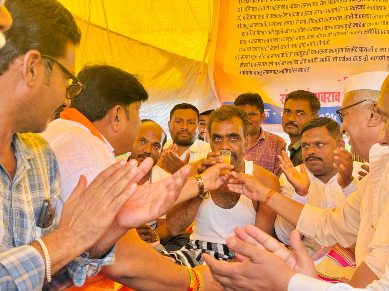 दहिगाव रेचा ते पळसखेड रस्ता वाहून गेल्याने शेतकऱ्यांचे आमरण उपोषण; आमदार लवटे यांच्या मध्यस्थीने तोडगा